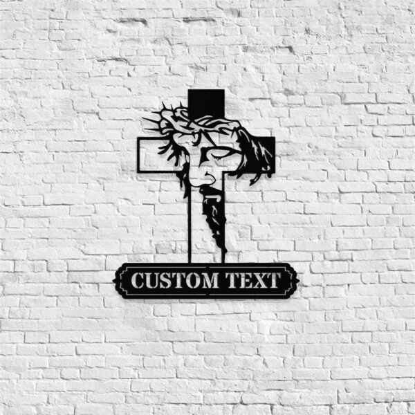 Jesus Cross Sign, Christian Metal Sign Decor, Personalized Christian Name Sign, Outdoor Door Jesus Decor, Cross Metal Sign, Housewarming