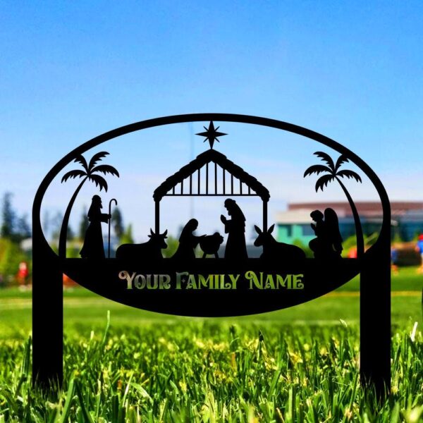 Metal Sign Christmas Nativity Yard Stake, Personalized Family Name Yard Sign, Garden Decor ,Gift for Garden Lovers, Gift for Christian