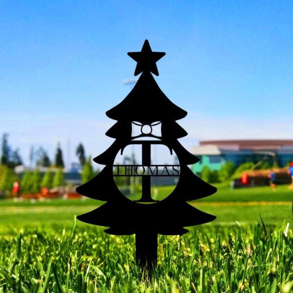Christmas Tree Monogram Metal Sign, Christmas Garden Metal Stake, Personalized Name Yard Sign, Outdoor Door Decor, Garden Art, Housewarming