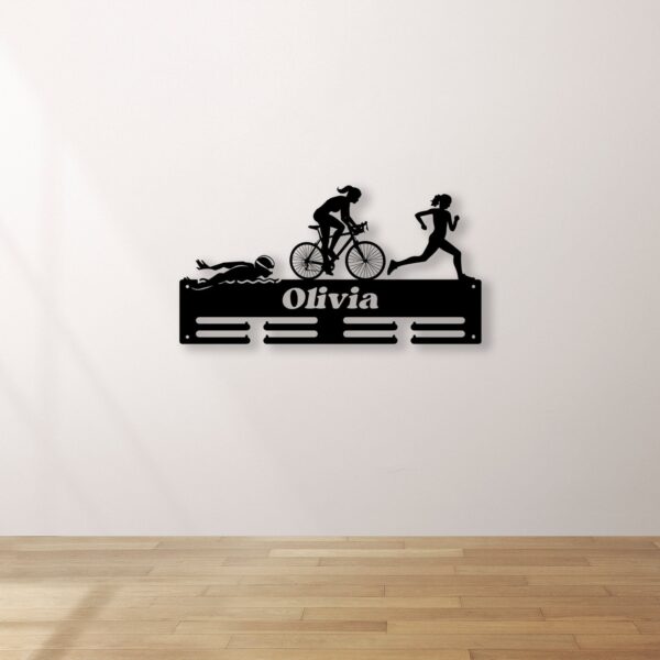 Personalized Triathlon Medal Holder with Led Light, Custom Metal Hanger, Sports Medal Display Rack for Awards Triathlete Cycling Biking Swim