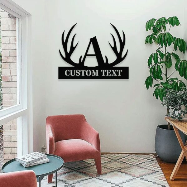 Antler Family Name Metal LED Sign – Personalized Monogram Wall Art – Last Name Initial Hanging – Housewarming Gift – Christmas Decor