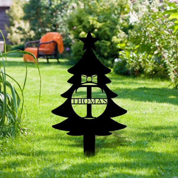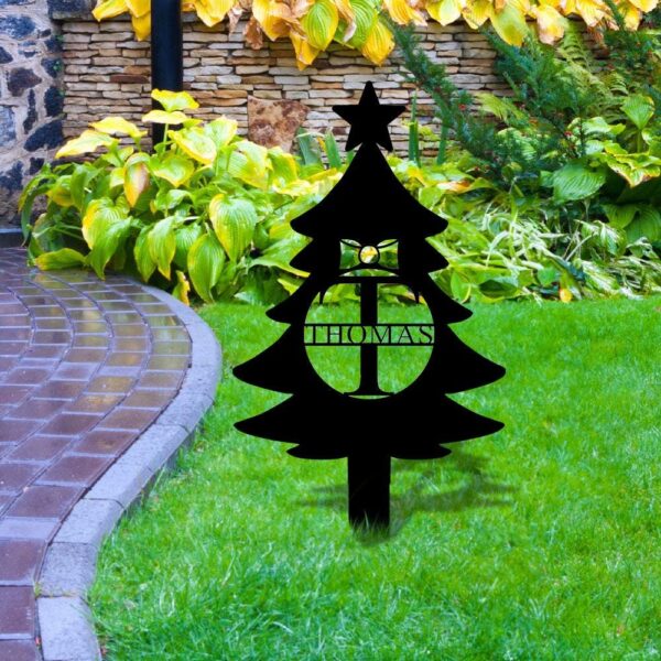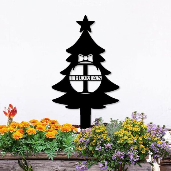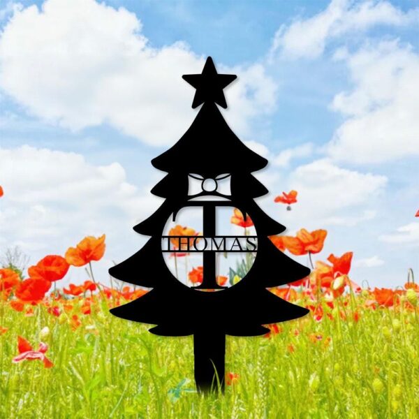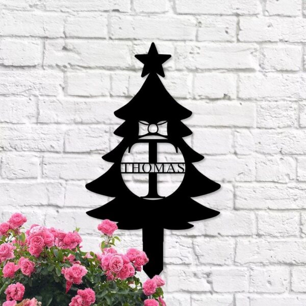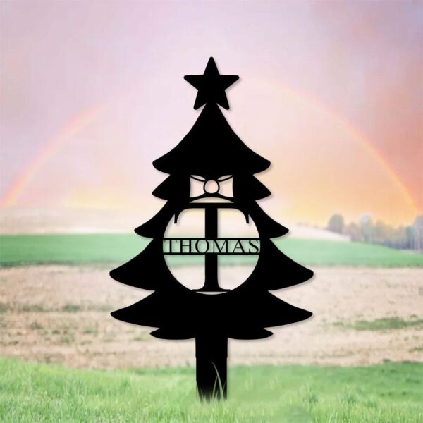 Christmas Tree Monogram Metal Sign, Christmas Garden Metal Stake, Personalized Name Yard Sign, Outdoor Door Decor, Garden Art, Housewarming