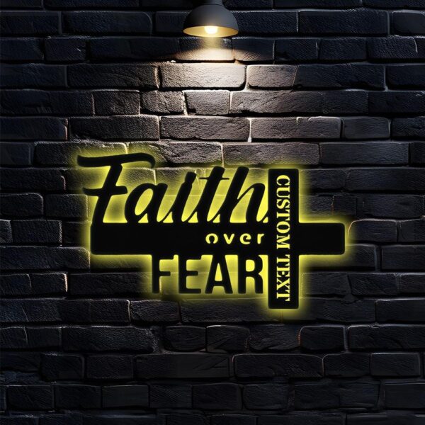 Faith Over Fear Christian LED Sign, Jesus Metal Sign, Christian Sign, Faith Over Fear, Outdoor Jesus Decor, Cross Metal Sign, Housewarming