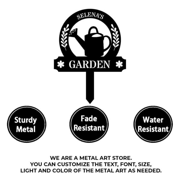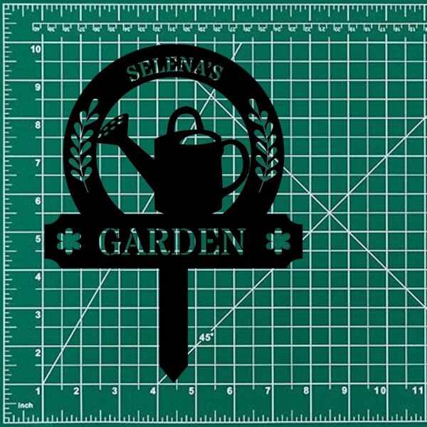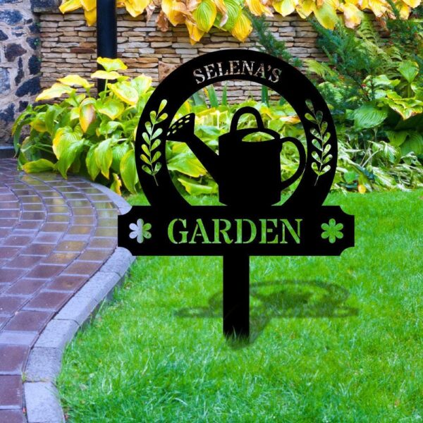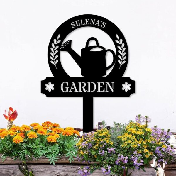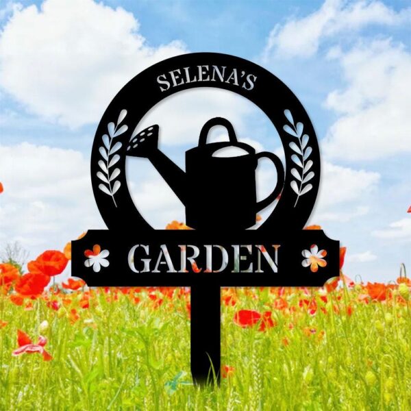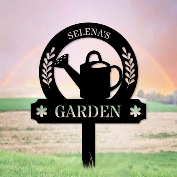 Custom Garden Metal Sign – Personalized Name Yard Decor with Watering Can Design – Ideal Outdoor Decoration for Garden Lovers