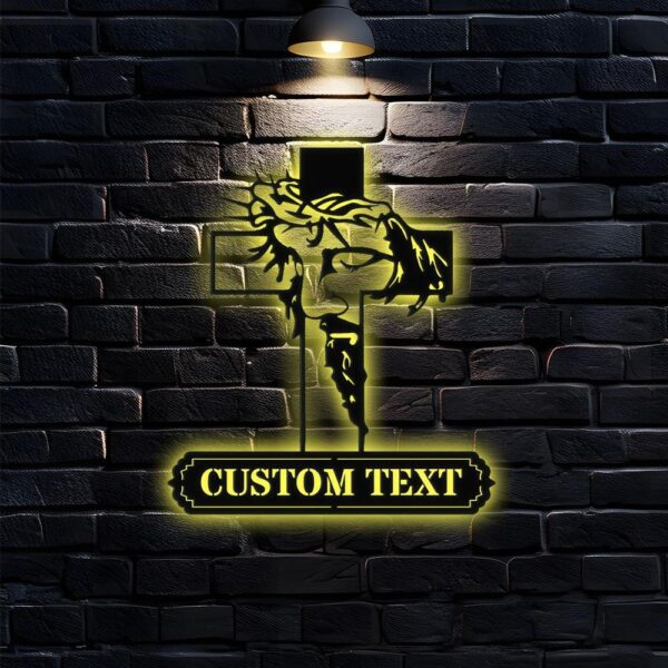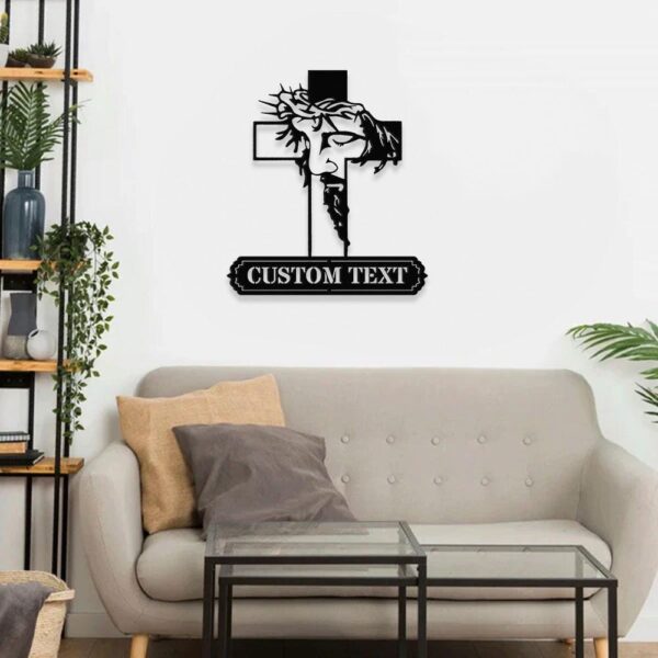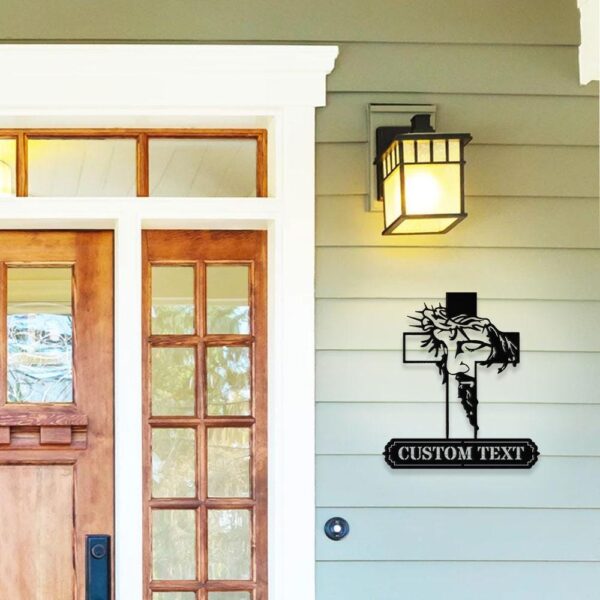 Jesus Cross Sign, Christian Metal Sign Decor, Personalized Christian Name Sign, Outdoor Door Jesus Decor, Cross Metal Sign, Housewarming