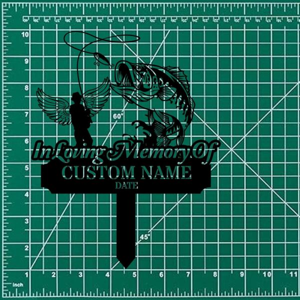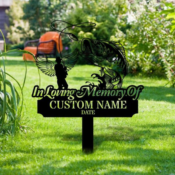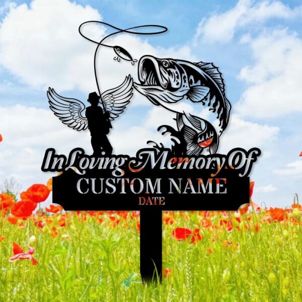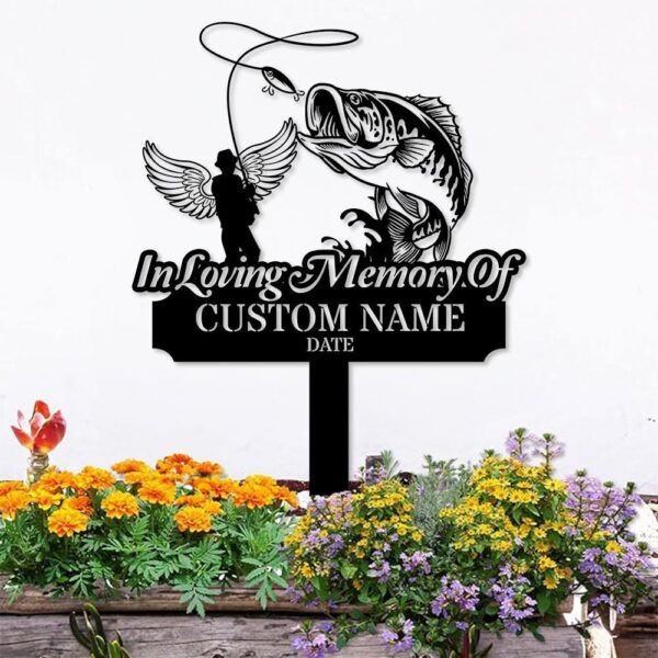 Memorial Fishing Remembering Stake, Personalized Metal Garden Marker, Memorial Metal Sign, Sympathy Gift, Grave Marker, Memorial Stake