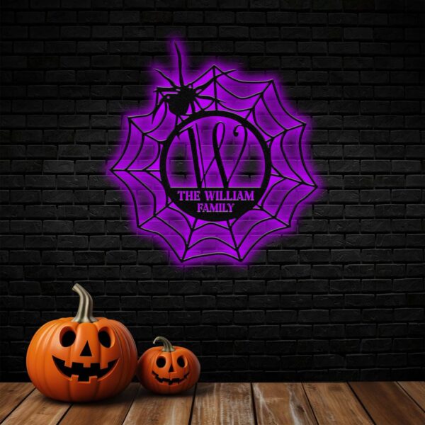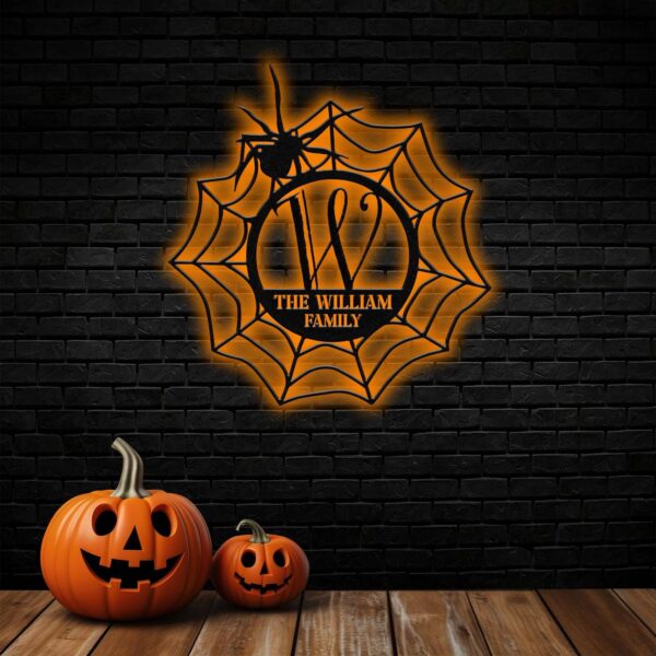 Metal Sign Spider Web Halloween Name Sign, Personalized Name LED Lights, Halloween Sign, Outdoor Door Monogram, Halloween Metal sign