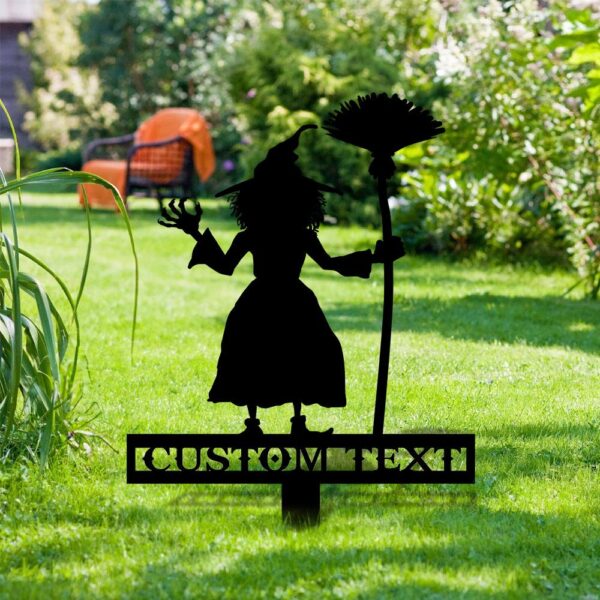 Metal Sign Witch Halloween Name Metal Stake, Personalized Family Name Yard Sign, Outdoor Door Garden Decor, Garden Art, Garden Lovers