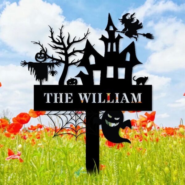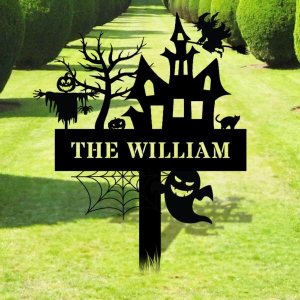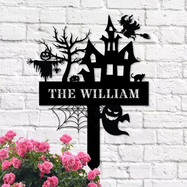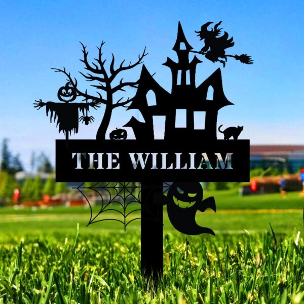 Metal Sign Witches House Halloween Name Sign, Personalized Name LED Lights, Halloween Sign, Outdoor Door Monogram, Halloween Metal sign