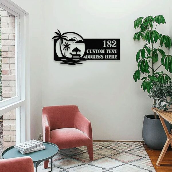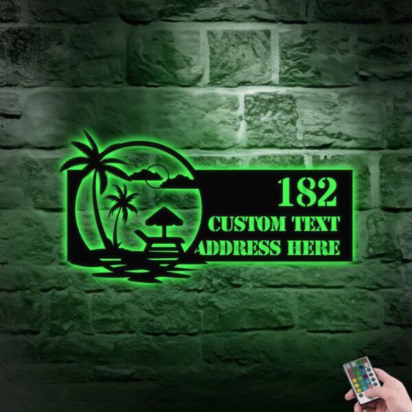 Personalized Beach Scene Palm Tree LED Metal – Address Sign House Number, Hanging Address – Personalize Family Name Sign – Wall Art
